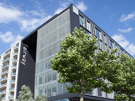 These serviced and managed offices are on the corner of Centre Boulevard and Arne Jacobsens Alle, just a few minutes from Byparken, and just 250 metres from the E20.